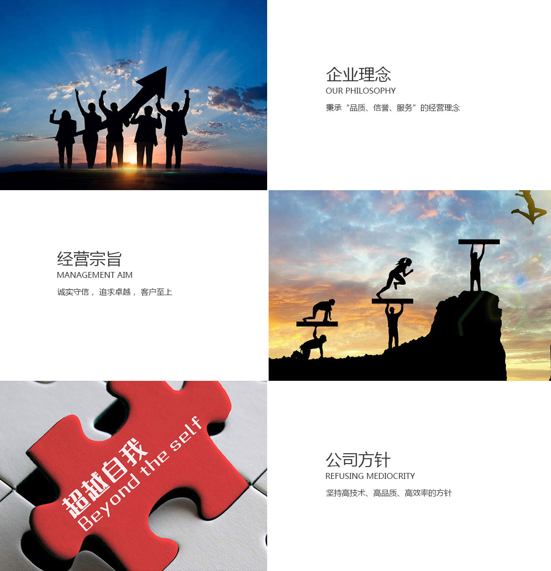 我們的宗旨:誠實守信, 追求卓越, 客戶至上。今后公司將一如既往,腳踏實地,與用戶攜手合作,共創輝煌!